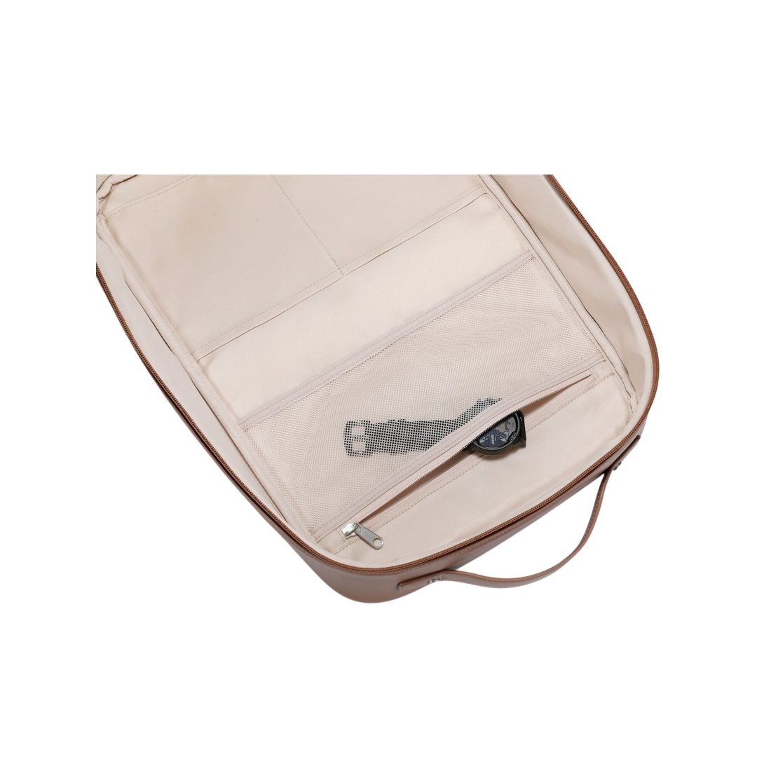The breathable mesh pocket with smooth zipper closure offers safe storage for watches, cables, or small personal items. The transparent mesh design allows quick visibility of stored essentials while keeping them securely in place. The reinforced stitching and high-quality zipper hardware enhance reliability and long-term performance.